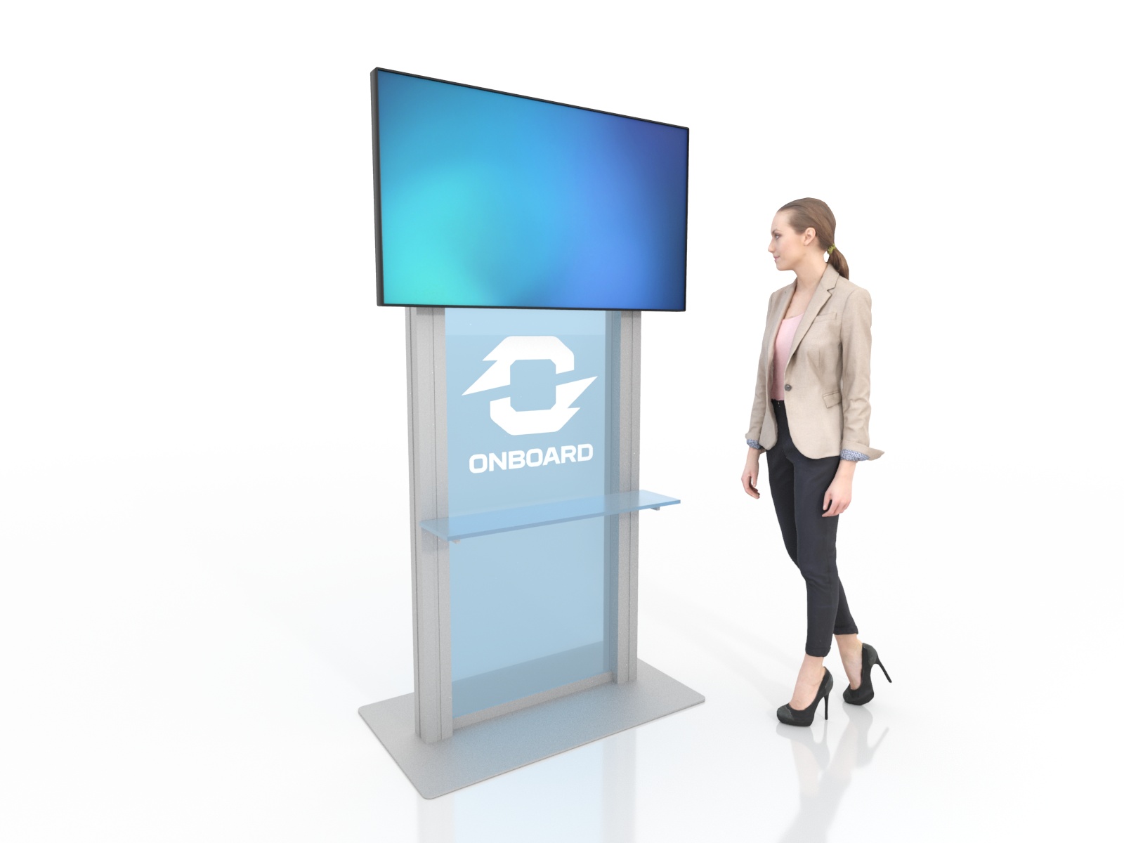 When choosing the right workstation or monitor stand for your   display, consider how you will use it on the show floor. Do you need   locking storage? Will the workstation or monitor stand hold a lead   retrieval machine, monitor, or other electrical device? If so, you will   need wire management. That may be as simple as ordering a grommet for   the counter or arranging for cord covers. If you are planning to use a   tablet computer, consider the tablet insert option for the counter top.   This option is practical, attractive, and secure for many tablets, such   as an iPad.