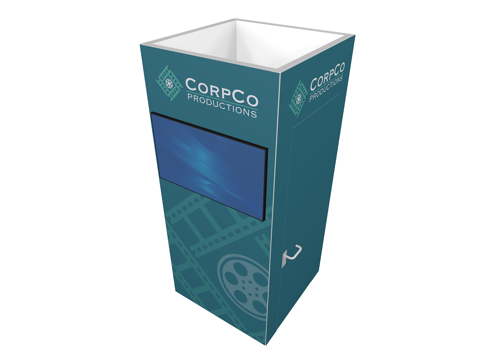 Towers have become an important feature of many island designs. They’re often 16 ft. high, offer expansive graphic real estate, and are ideal for large monitors. In addition, island towers provide exhibitors with convenient locking storage.