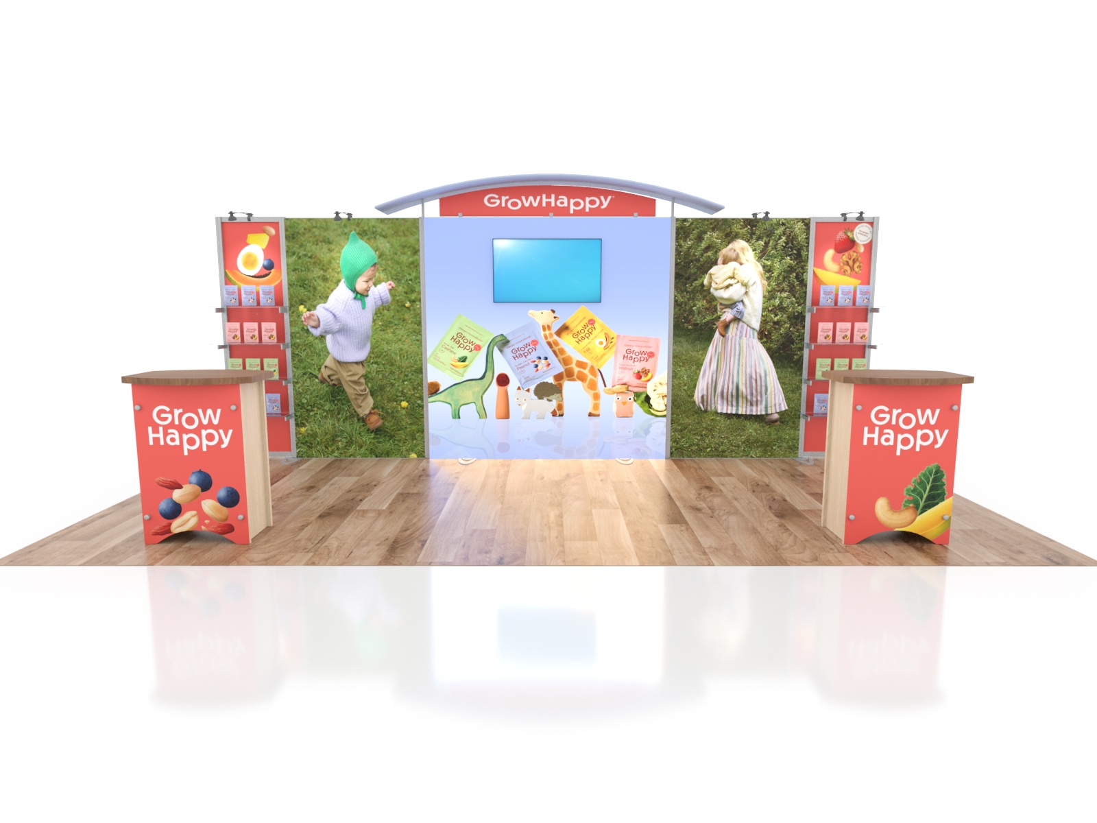 Hybrid is a relatively new category of trade show displays. Generally, hybrid displays incorporate aluminum extrusion, tension fabric, and other display components such as laminates, wood, Sintra, and other materials to create a tabletop, inline, or island exhibit.
