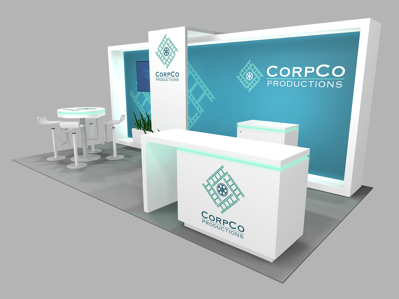 The exceptionally strong, yet lightweight frame, supports up to a 50 in. LED monitor. 10 ft. and 20 ft. lightbox versions are available with a wide assortment of attractive counters, charging solutions, and kiosks. Transform your trade show marketing with a RE-2164 rental exhibit.