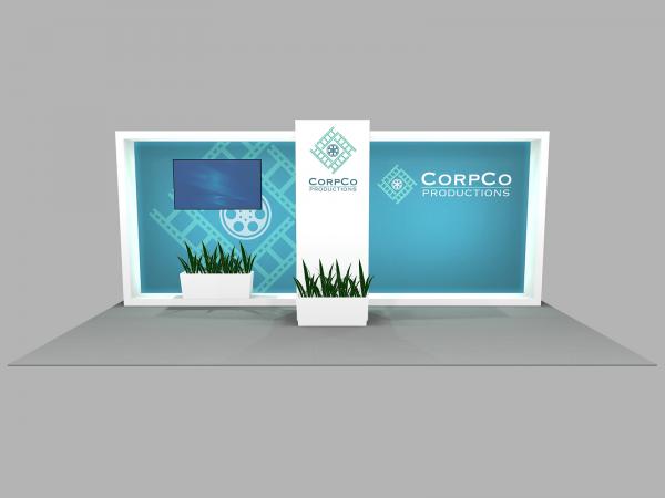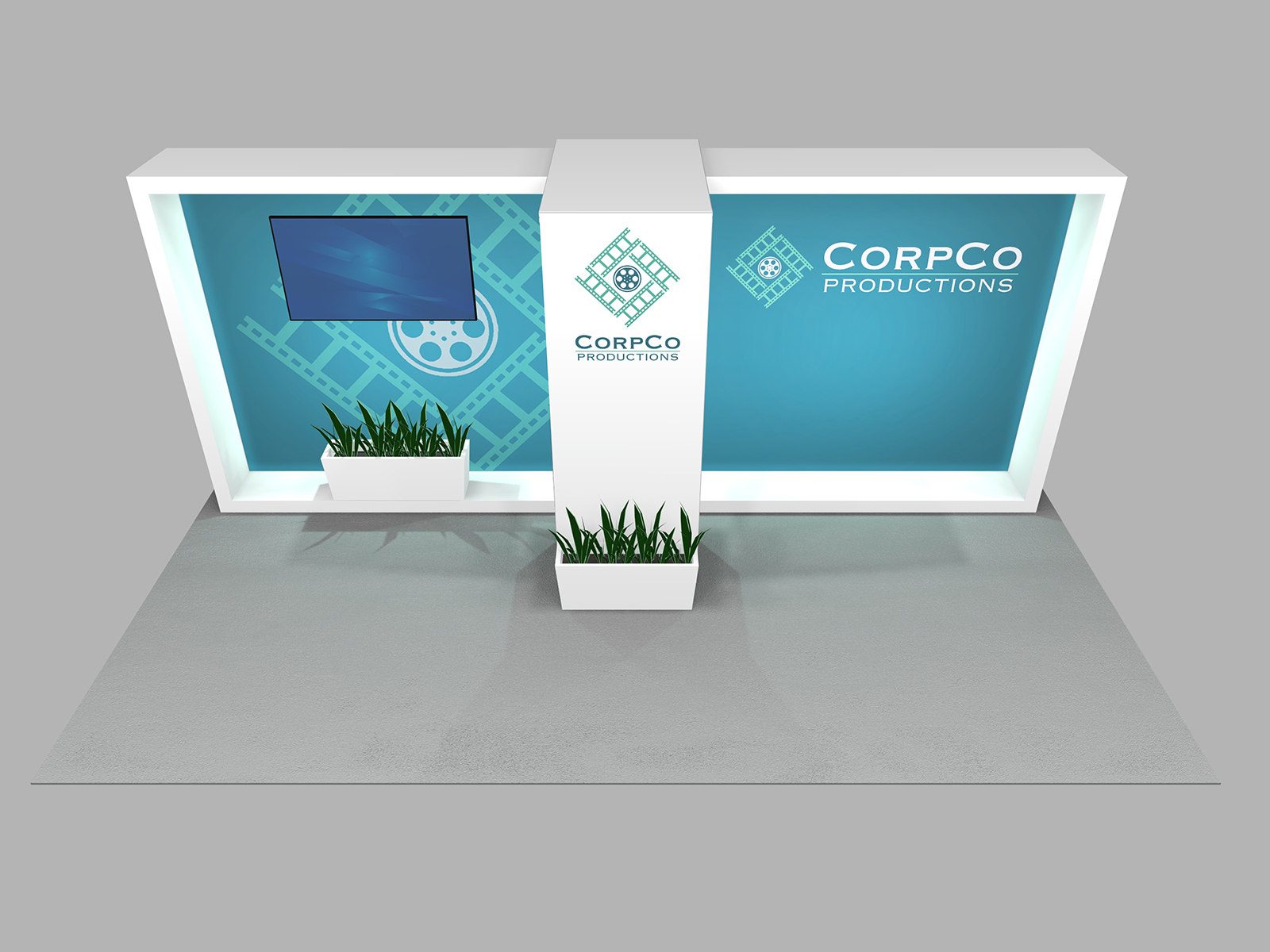The exceptionally strong, yet lightweight frame, supports up to a 50 in. LED monitor. 10 ft. and 20 ft. lightbox versions are available with a wide assortment of attractive counters, charging solutions, and kiosks. Transform your trade show marketing with a RE-2164 rental exhibit.