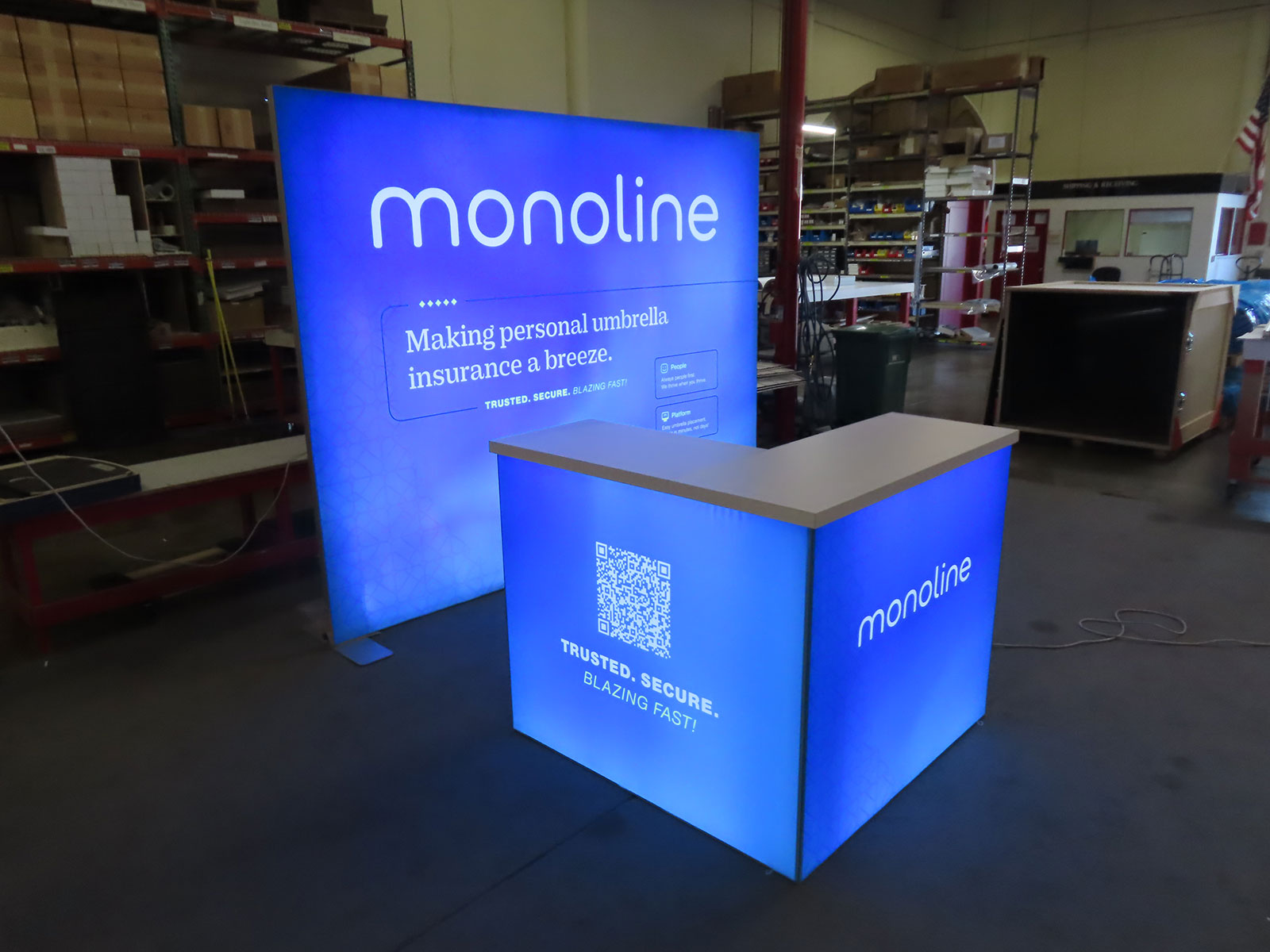 Reception Counter with Backlit Graphics, Wireless Charging Pads,