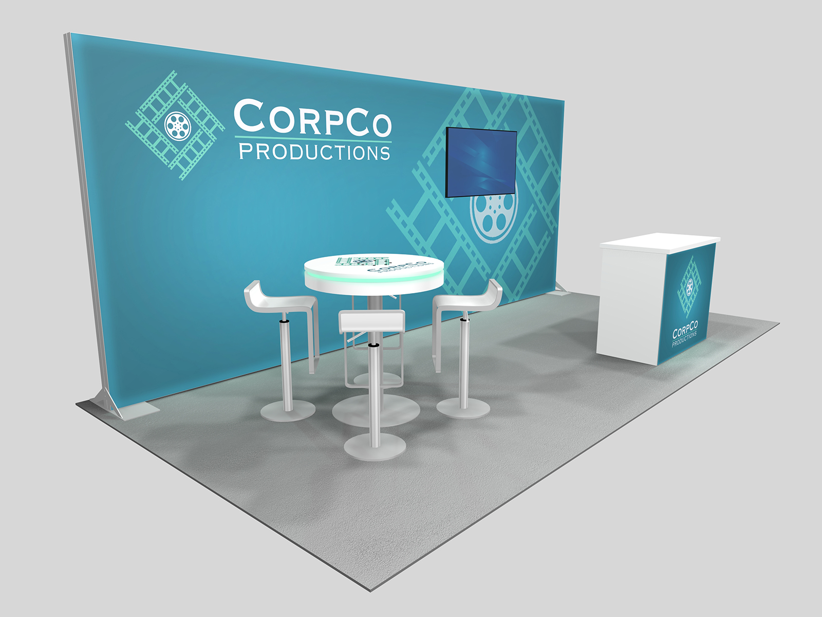 Rental trade show exhibits have graduated to the BIG TIME! For example, the RE-2163 is a big, bold exhibits constructed with an SEG engineered aluminum, silver anodized frame and brilliant LED lights. The exceptionally strong, yet lightweight frame, supports up to a 50 in. LED monitor. 10 ft. and 20 ft. lightbox versions are available. You won't believe your eyes the first time you see the high-resolution backlit fabric graphic.