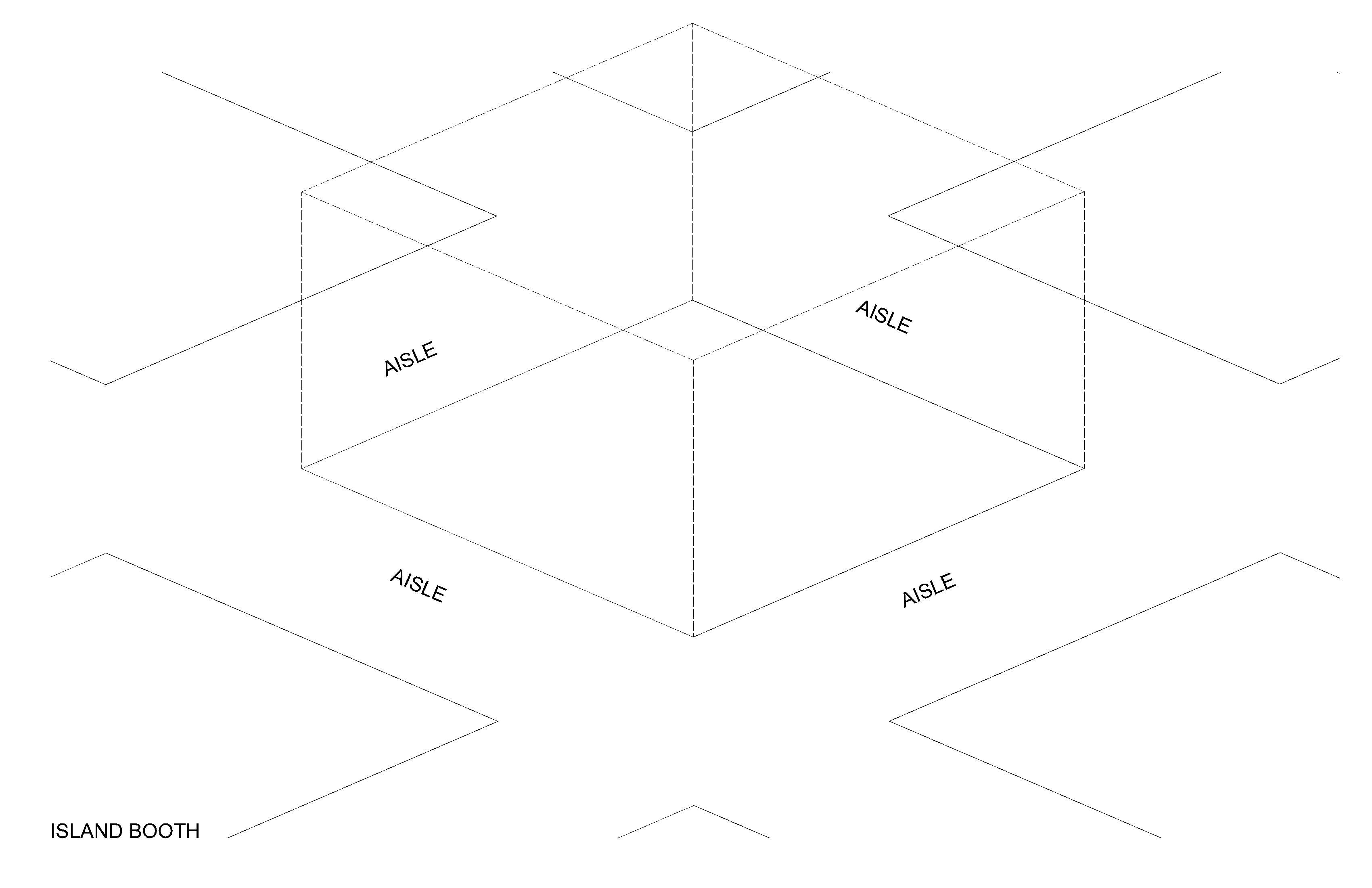 Any exhibit 20 x 20 or larger and is surrounded by aisles on four sides.